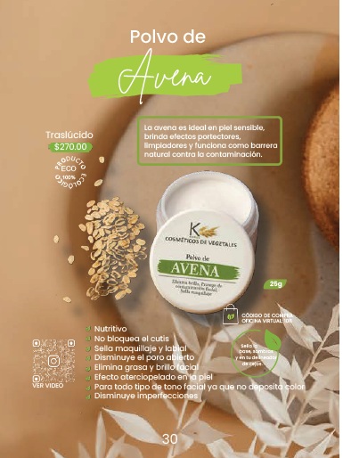 La avena es ideal en piel sensible, brinda efectos portectores, limpiadores y funciona como barrera natural contra la contaminación.